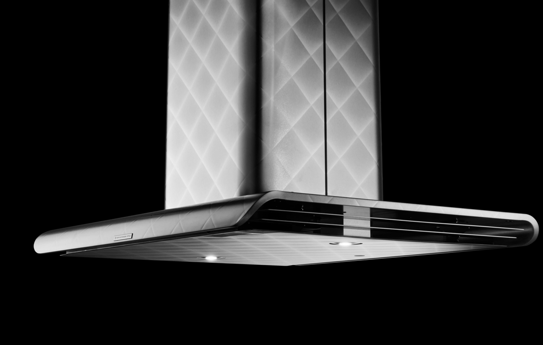 アイランドキッチンのために開発されたレンジフード「UFO」に、「キルトマット」デザインが新登場。 マットなキルティングを施したステンレスが柔らかな光を反射し、空間に映えるアートオブジェのような存在感を放ちます。99.8%の煙を捕集する3枚のウィング構造と、清掃しやすいキャノピー形状を採用。 整流板はワンタッチで開閉でき、手が届きやすく、お手入れも簡単。美しさと機能性を兼ね備えたレンジフードです。
