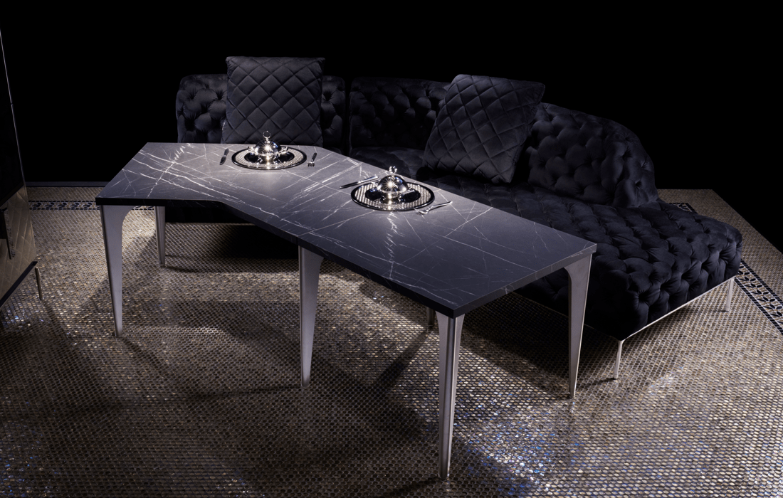 「集ダイニングテーブル」は、集ソファに座ったまま快適に食事ができるよう設計されたシステムテーブル。