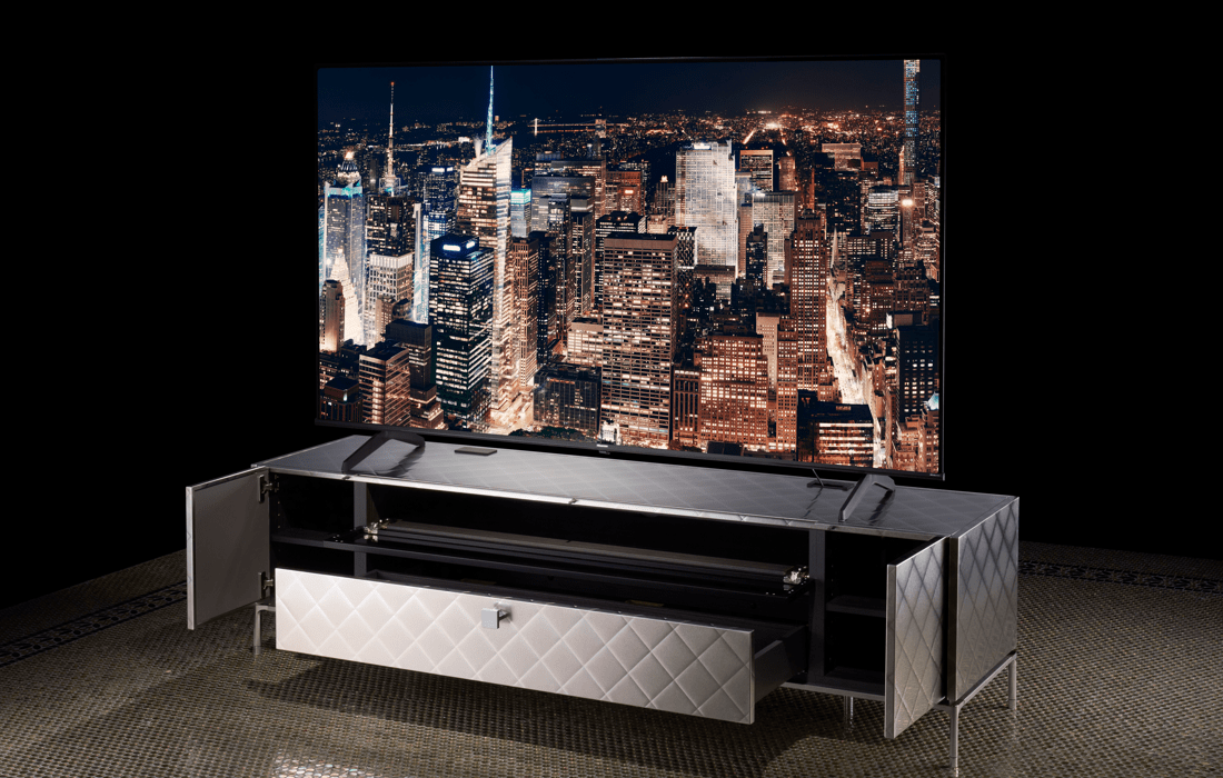 「TVイゾラ」は、イタリア語で“島”を意味する名のとおり、部屋の中央に置くことができるアイランドテレビボードです。背面まで美しく仕上げられており、壁付けだけでなく、リビングの中央に島のようにレイアウトすることも可能。空間を自在にゾーニングし、開放的な住まいを演出します。キッチン「iNO」と同じ扉・脚デザインを採用し、空間全体に統一感を生み出します。浮遊するようなデザインのエアフロー構造で掃除がしやすく、配線も収納内に美しく収まる設計。テレビや視線に合わせて高さ調整が可能で、くつろぎながらも最適な視聴環境を実現します。キッチンとリビングが心地よくつながる、新しいテレビボードのかたちです。