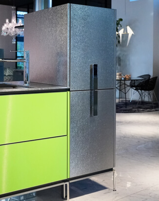 新たに、キッチンとフラットにつながり広々使える「ダイニングブロック」が登場。ダイニングからキッチンに手が届くため、出来上がった料理をスムーズにテーブルにサーブできます。ダイニング側の引き出し収納で、テーブルセットも楽々。
