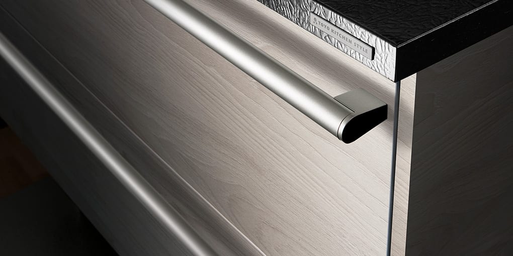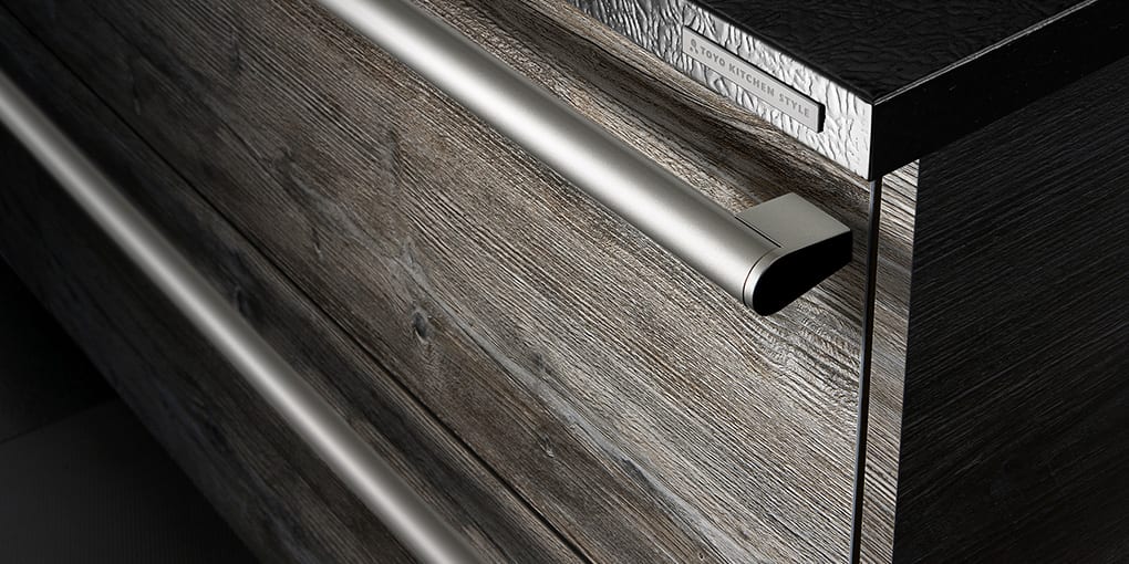 熱硬化樹脂のメラミンを表面に使用しているため、熱や水、汚れや衝撃に強い、キッチン扉として優れた耐久性を併せ持ちます。