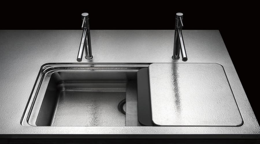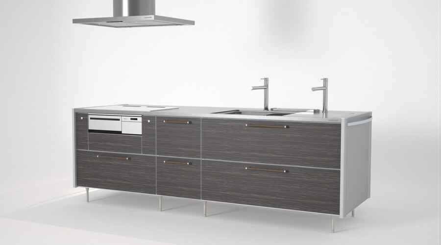 ドアマテリアル Black Oak Grain ダーク色に染色した木目調扉。水平方向に細かな濃淡があり、柔らかく落ち着いた風合い。深い色合いの木目が、キッチンを重厚なイメージに変え、高級感あふれる空間をつくります。