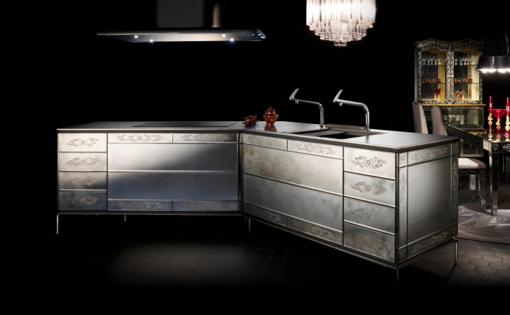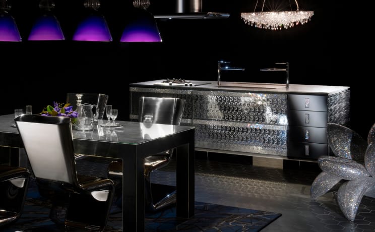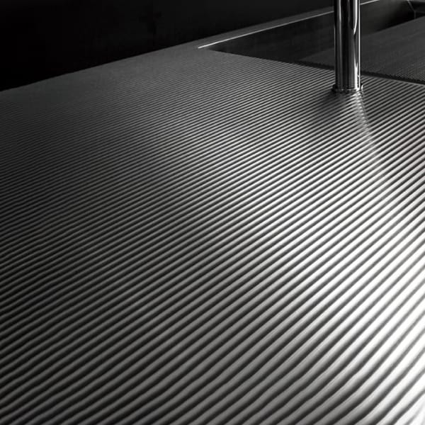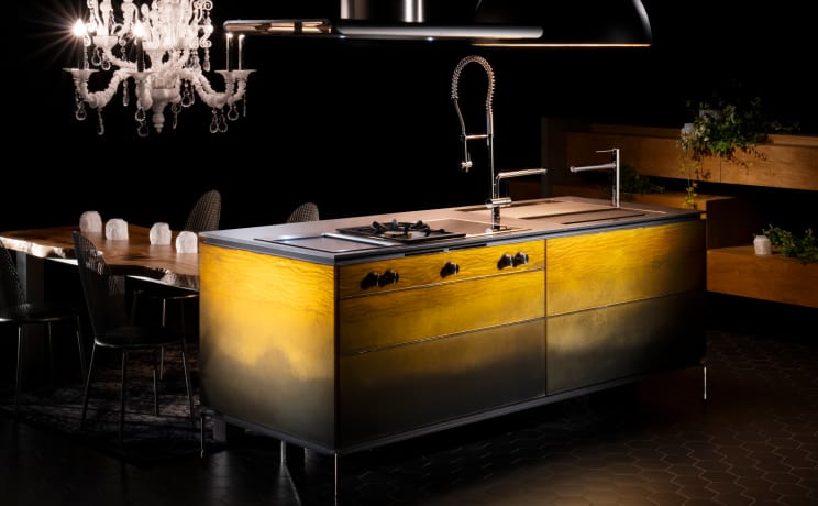 レーシングカーをはじめ、ロケットや船舶などの製造にも用いられている先端素材「カーボンファイバー」。その性能と美しさ、革新性から、ロマンを感じさせる存在です。技術の進歩によって生まれたキッチンは、夢や冒険、そして未来を感じる時間を提供します。