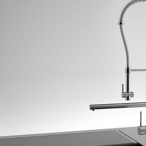 スピーガトレコレクションの「カーボンファイバー」のための、特別なハンドルをデザインしました。無垢のアルミの重厚感に、手作業で仕上げられた本革の温もりが融合し、洗練された美しさを実現。熟練の職人が一針一針丁寧に施したステッチは、まるでキッチンに命を吹き込むよう。ディテールの美しさにもこだわる私たちの哲学が息づいています。