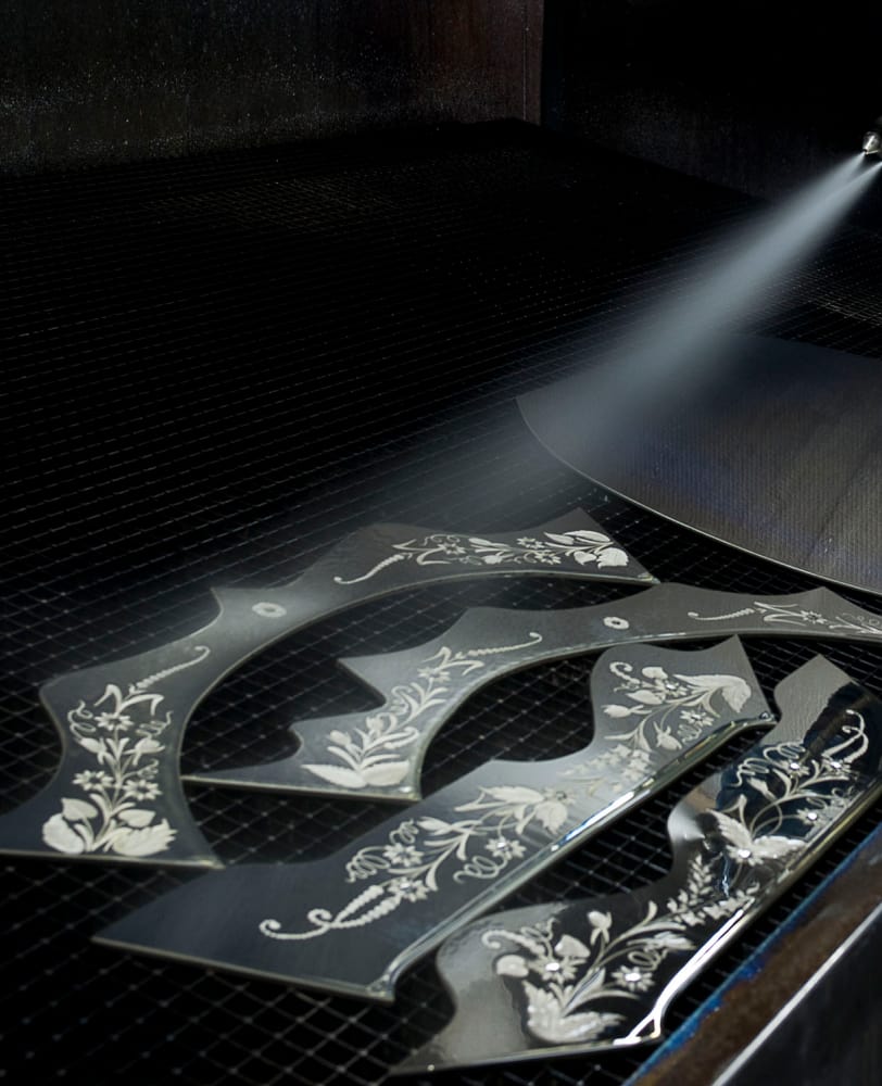 鏡が生まれた場所、ヴェネツィア。「ヴェネツィア」の鏡は、「ガルガーノ」のアートガラスを手がけるヴェネツィアの工房が製作しています。伝統的な技法を継承した職人たちが一枚一枚オーダーメイドで作り上げ、世界で唯一のキッチンが完成します。
