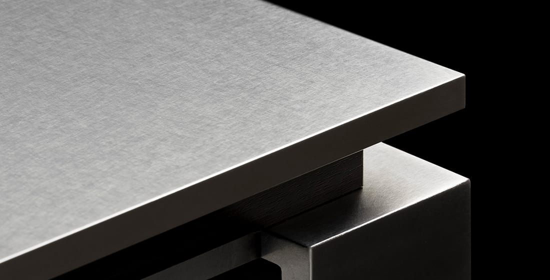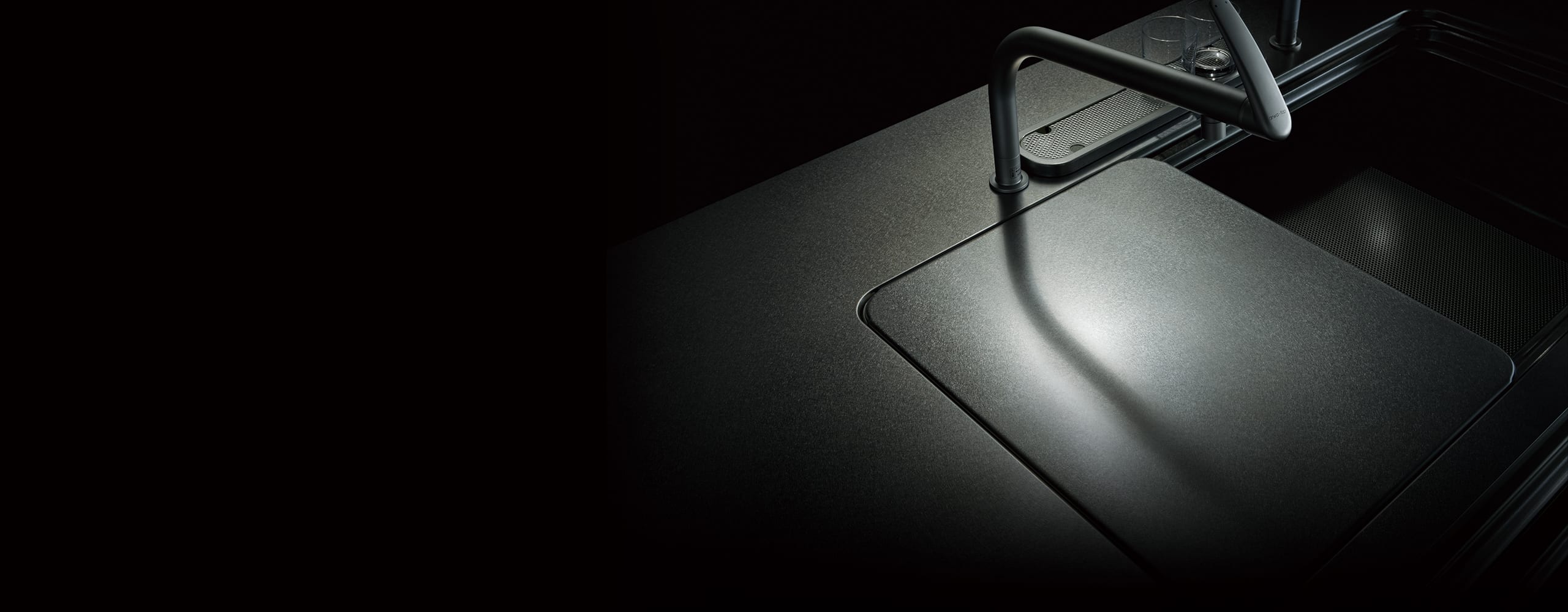 鋼のなかで特に強度に優れるステンレス。成形や曲げ加工が難しいとされるこの素材を、職人の手で丁寧につくり込み、熟練の研磨技術で仕上げました。つなぎ目がなく、まるで一枚板のような美しさと強靭さを兼ね備えたワークトップです。