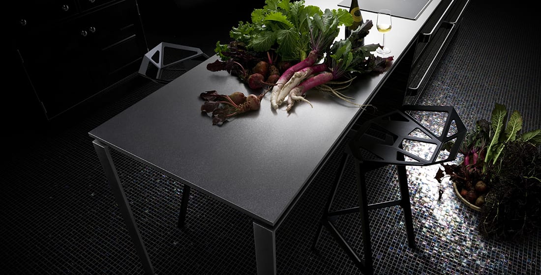 iNOのワークトップは極薄の1.3cm。BAY/BAY CUBEより薄く、より美しいワークトップです。ワークトップのスリットは脚元のエアフロー構造とデザイン的な親和性があり、全体的な統一感を生み出しています。