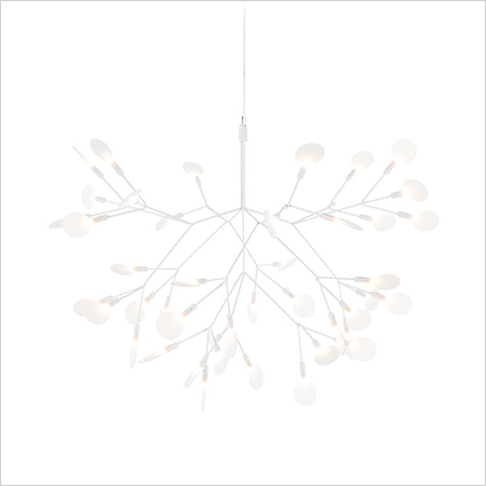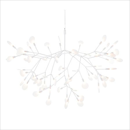 「ヘラクレウム2」はセリ科の多年草ヘラクレウムの繊細で可憐な花がデザインモチーフになっています。 デザイン性が高く、またヘラクレウム2のある空間は空間に花が咲いたように華やかです。 moooi独自の技術により電線がなくすっきりと見え、またヘラクレウムのたくさん広がった枝が細く華奢な理由もこの技術があってこそ実現できています。 この度、ヘラクレウムに新しくホワイトカラーが登場しました!