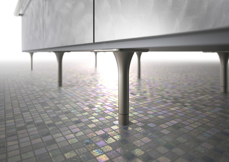 トーヨーキッチンスタイル独自の快適なキッチンの脚「エアフロー」は、キッチンが宙に浮く「浮遊感」を実現しました。