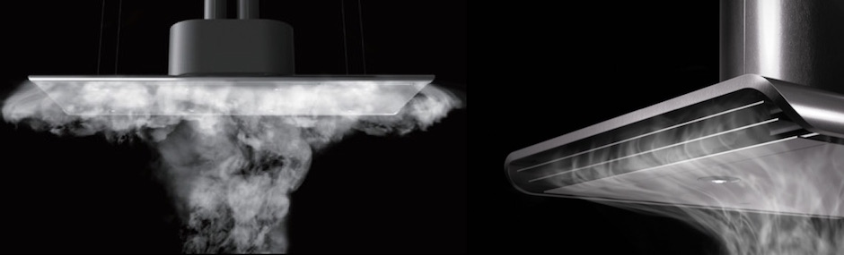 フラットな整流板を伝い、サイドウィングで煙や臭いをキャッチ。