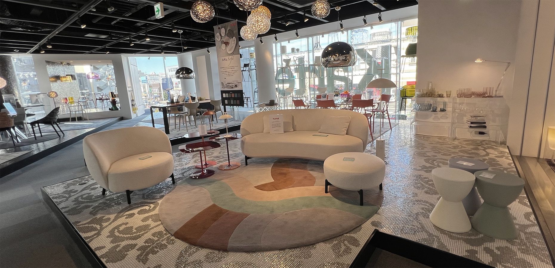 ゼロ動線を実現するキッチン「iNO」シリーズを中心に、Kartell(カルテル)、moooi(モーイ)など世界中からセレクトしたインテリアをコーディネート。