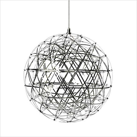 また、吹き抜けの天井に吊るされたmoooiの照明レイモンドとシンク上のクランカーが、夜の空間をきらびやかに演出しています。