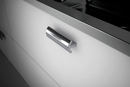 NEW HANDLE 上下・左右どこから触れても、引き出しやすいハンドルが新発売。 2つの白いキッチンに合わせてコーディネートください。