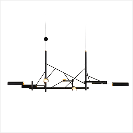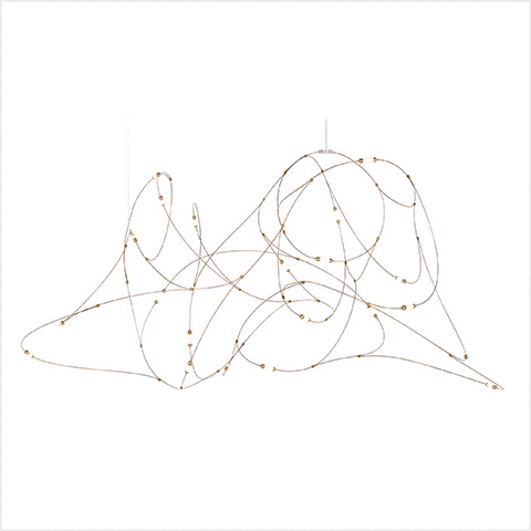 LED光源のリズミカルな配置と、複雑に架かり合うフレームは、彼の職人気質による長い時間にも及ぶ試行錯誤から生み出されています。