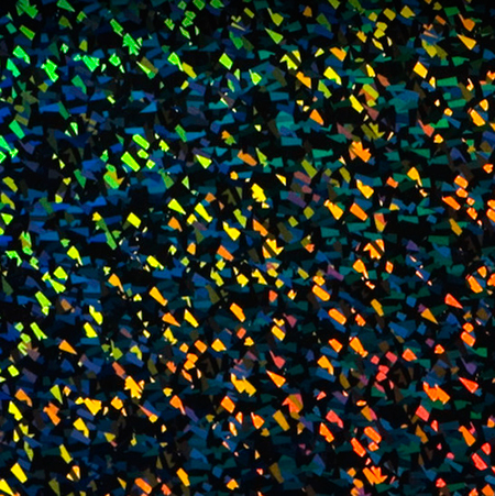 虹色に輝くHPL(ハイプレッシャーラミナート)の扉には、大粒のホログラム粒子が使われています。