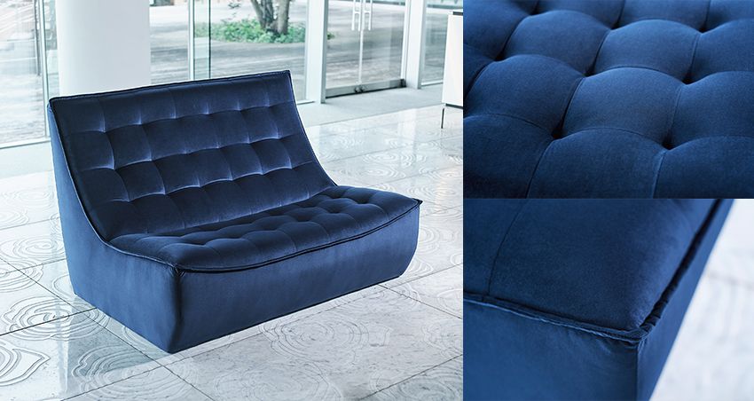 ベルベット生地は、光の当たり具合や、見る方向によって様々な表情を見せてくれます。その時々で新たな表情を見出す楽しみがあります。さらりと心地よい手触りで、夏は爽やかに、冬は暖かく身体を包みます。また、密度が高く起毛した生地による、安定した座り心地も兼ね備えています。