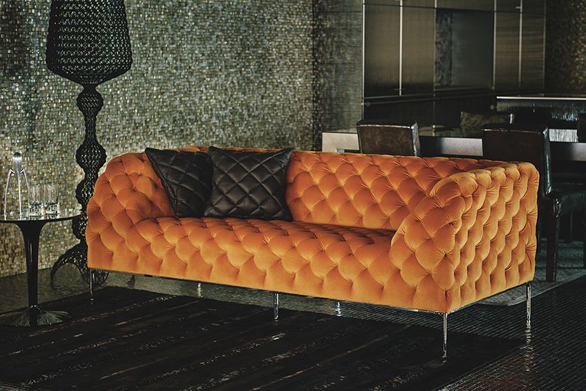 光を浴びて、元気なビタミンオレンジに、夜のムードは、ほろにがビターなオレンジに。一日のサイクルでも様々な表情を楽しむことができ、長く付き合っていくソファには適したカラーです。