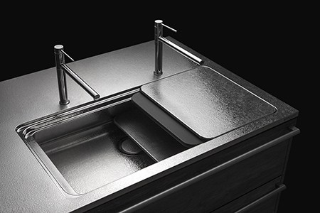 代名詞でもある立体活用の「3Dシンク」は、シンクを3層に分け、ワークスペースをワイドに広げました。