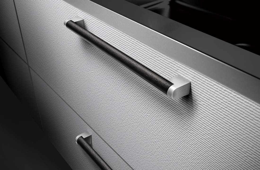 直径20mmの無垢材を使用した木材ハンドルに高精度なスリットを施したアルミデザインウォール。質感にこだわったPORTO限定部材をラインナップ。