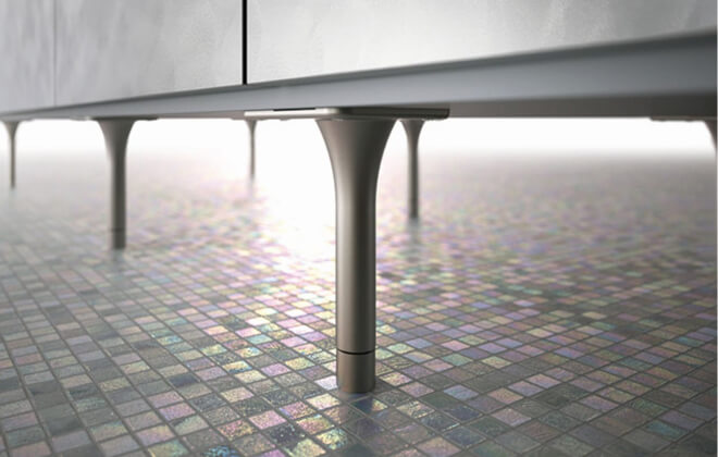 キッチンに「脚」をつけることで風通しがよくなり、冷暖房も届きやすくなります。キッチンがひとつの塊として浮いているかのような「浮遊感」を実現しました。