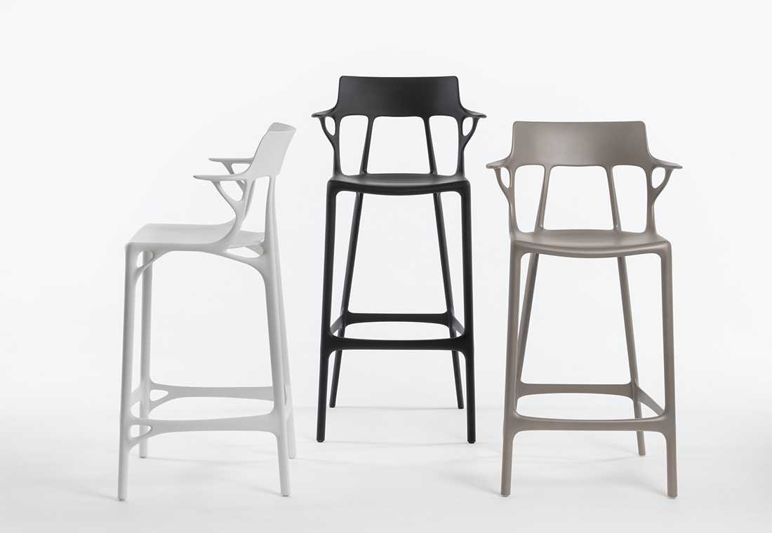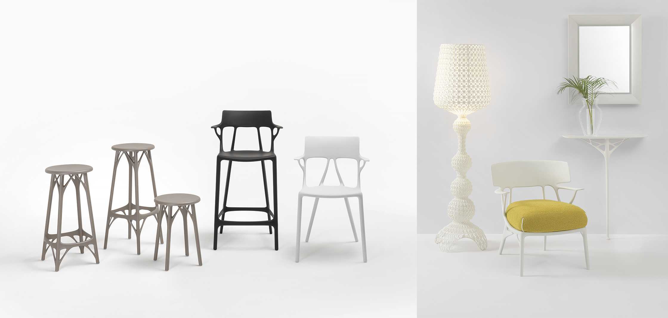 チェアの発売以降、この革新的なコレクションはスツール、ラウンジチェア、コンソールと次々にラインナップを増やし、様々なシーンでA.I.ファミリーが使用されるようになりました。その斬新な発想とデザインが業界を驚かせ、Kartellの進化を象徴するものとなっています。A.I.が家具をデザインするとはどういうことなのでしょうか。