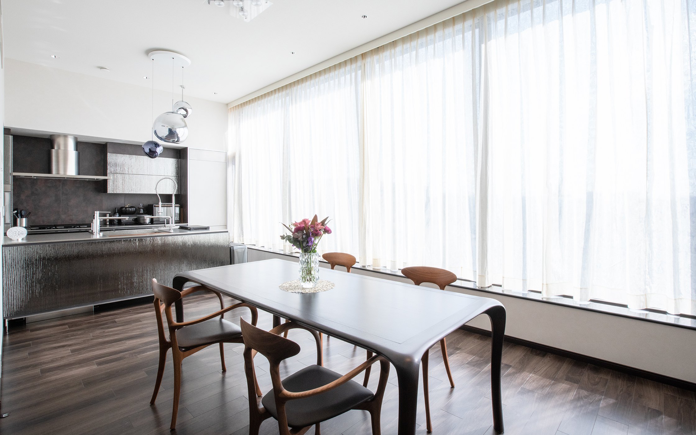 緩やかな丘の中腹に建つマンションの最上階で暮らすK様ご夫妻。1年前、入居にあたりフルリフォームを施したという住まいは、モダンで洗練された印象です。なかでもキッチンは奥様の一番のお気に入りの場所。そこに詰まったこだわりの数々をご紹介します。