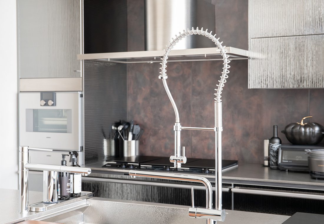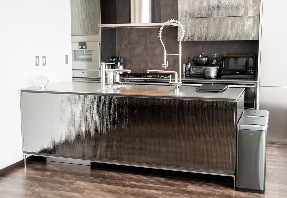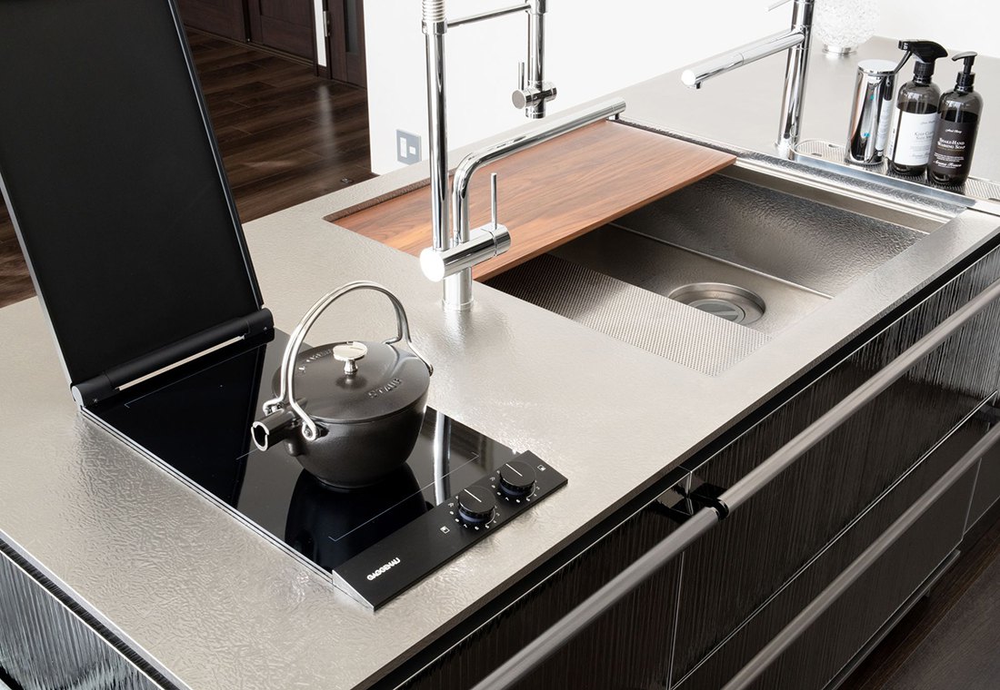 その際、選んだのが「iNO」の「スプラッシュブラック」。滝から流れ落ちる水しぶきのイメージを金属で表現した洗練されたキッチンです。