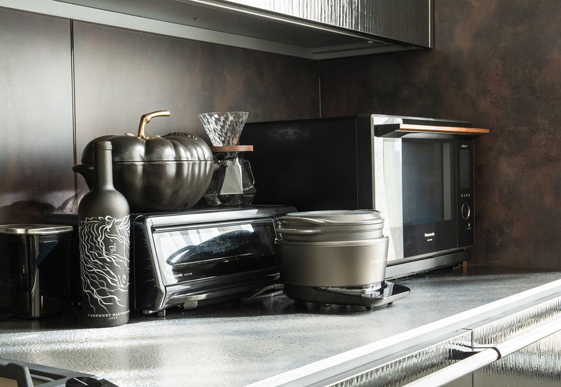 その言葉を裏づけるかのように、キッチンは隅々までピカピカ。さらに奥様の“キッチン愛”を感じさせるアイテムがセンスよくコーディネートされているのも目を惹きます。例えば、ストウブの限定モデルやロースター等々。