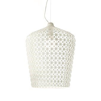 全身が糸を紡いで作られるレース生地に覆われているような、独自形状の照明「カブキシリーズ」。