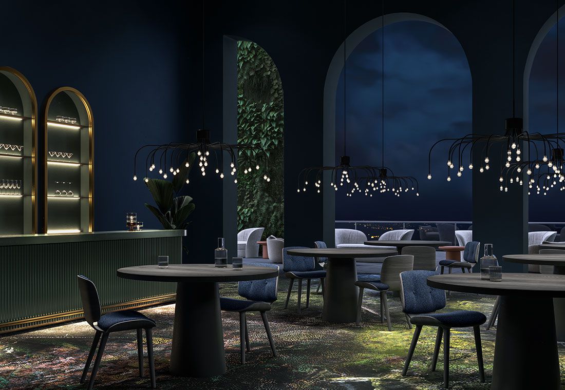 夜空からこぼれ落ちる流れ星をイメージした照明