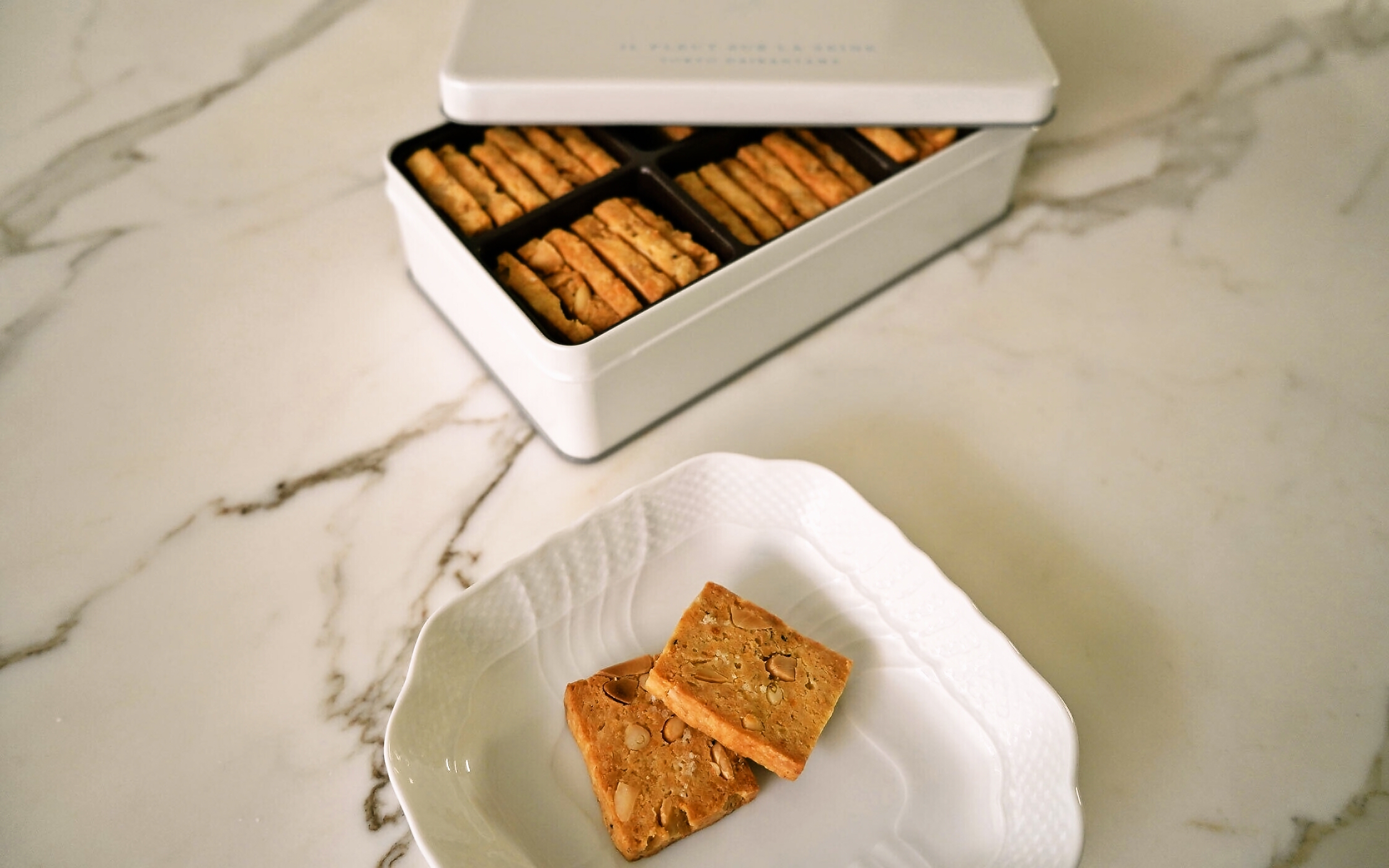 ゲランドの塩とエダムチーズ、豊穣の極みのスペイン産アーモンドや松の実がたっぷりと入り食感も楽しめる塩味のクッキー。お酒にも合うので、甘いものが苦手な方にもおすすめなお手土産です。
