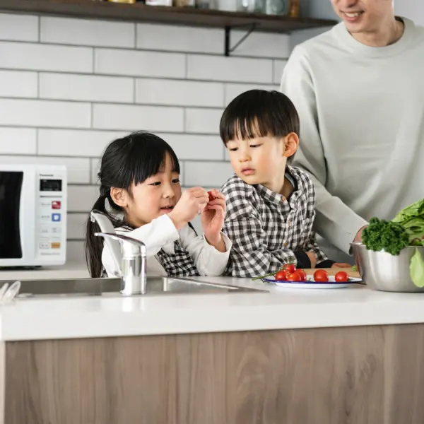 例えばお皿や食材を洗う時に最適な高さと、包丁で食材を切る時に最適な高さ、加熱調理に最適な高さは実は異なっています。調理作業に合わせて高さが変えられる立体活用シンクを選べば、キッチンの高さを変えること無く、その時の調理作業に合わせた最適な高さに調整することが可能です。