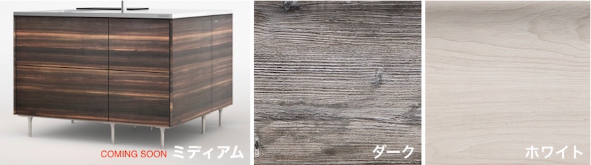 新色のドアカラーは4色。キッチンに最適な素材 - HPL(ハイプレッシャーラミネート)の扉は、リアルなテクスチャー表現と美しいグロスの質感、そしてキッチン環境にベストなタフなボディを兼ね備えています。