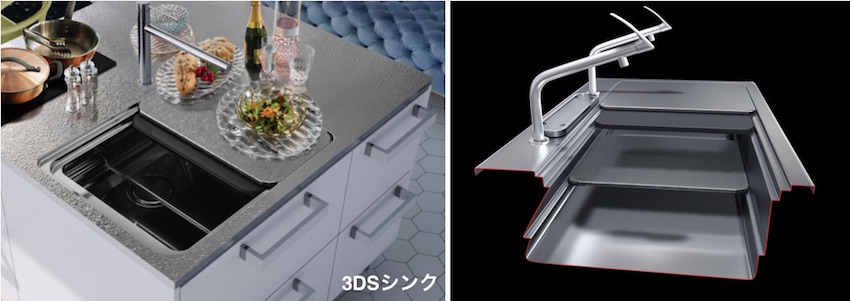 シンクスペースを立体的に使う発想で、キッチンシンクの概念を覆した3Dシンク。シンクを調理スペースとして使えることで、今までできなかった効率的な作業を実現します。