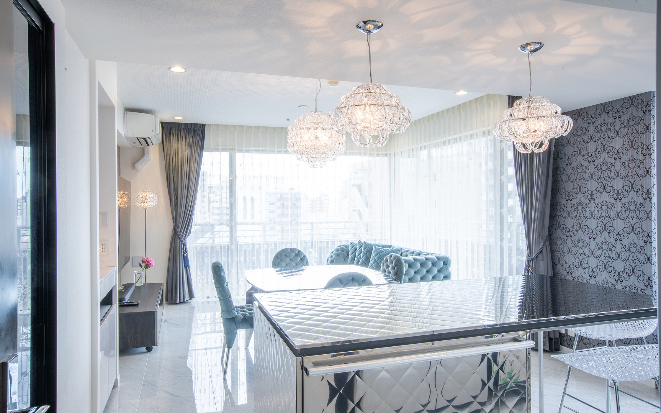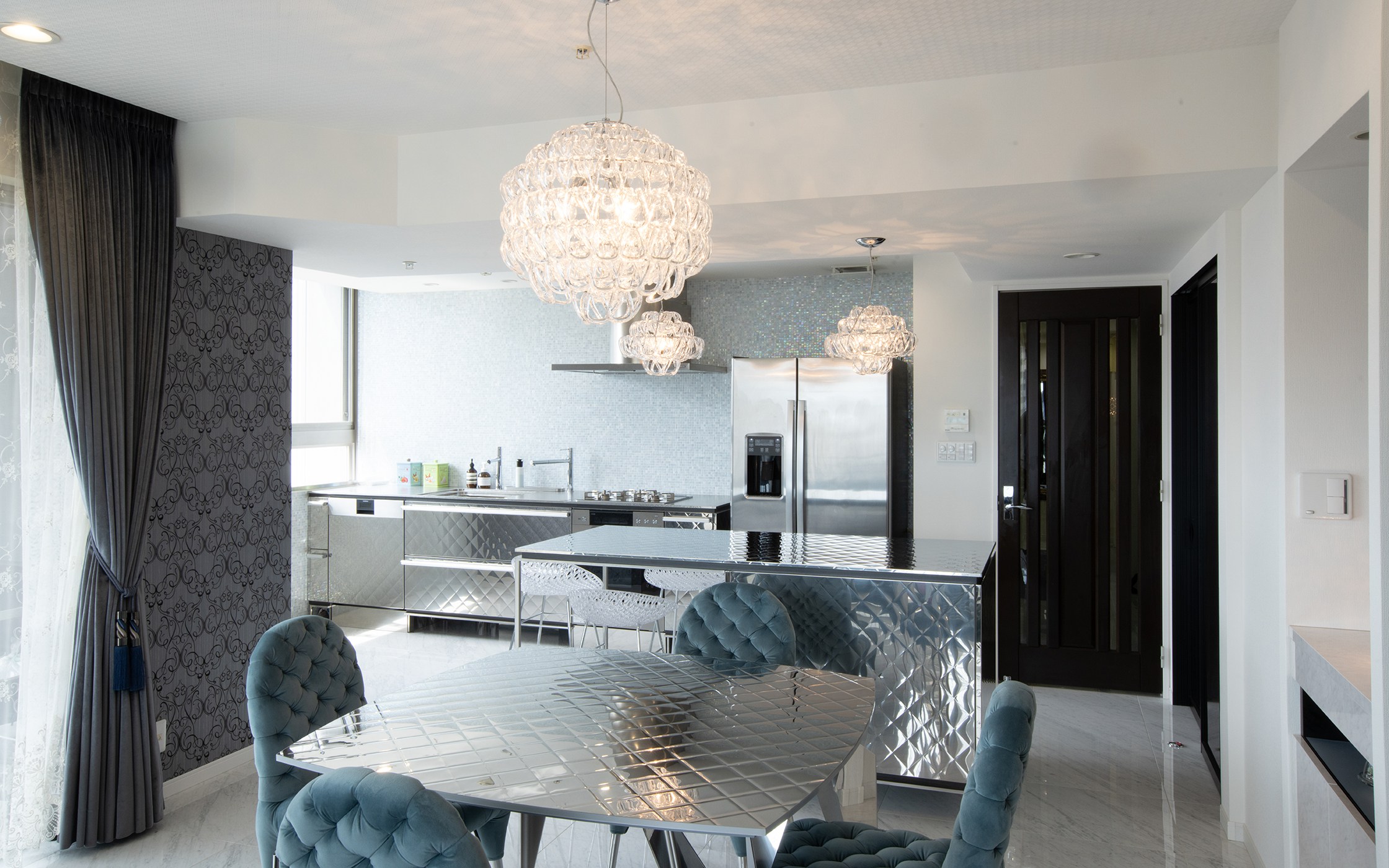 岡村様ご夫妻の住まいは、名古屋市内の閑静な住宅街に建つ高層マンション。新築時に入居し、これまでに幾度もリフォームを重ね、昨年はついにLDKを全面改装。キッチンを始め、照明や家具をトーヨーキッチンスタイルでトータルコーディネートした一室空間の魅力をご紹介します。
