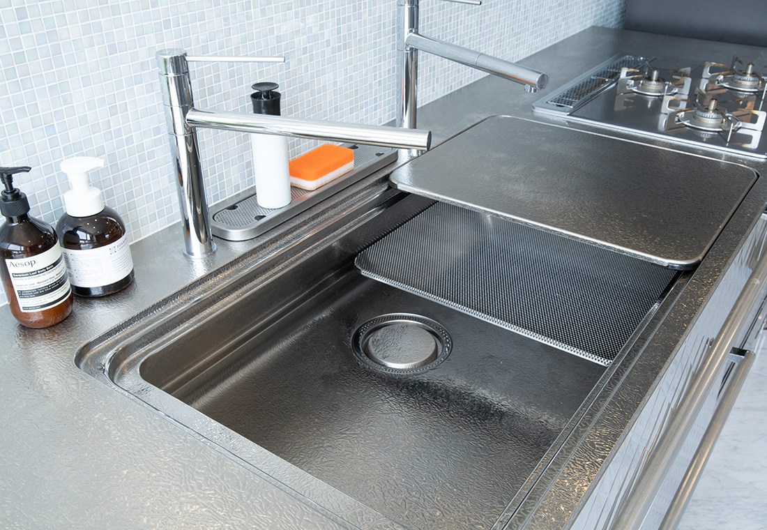 スライドできる専用プレートがワークスペースを広げる「3Dシンク」。