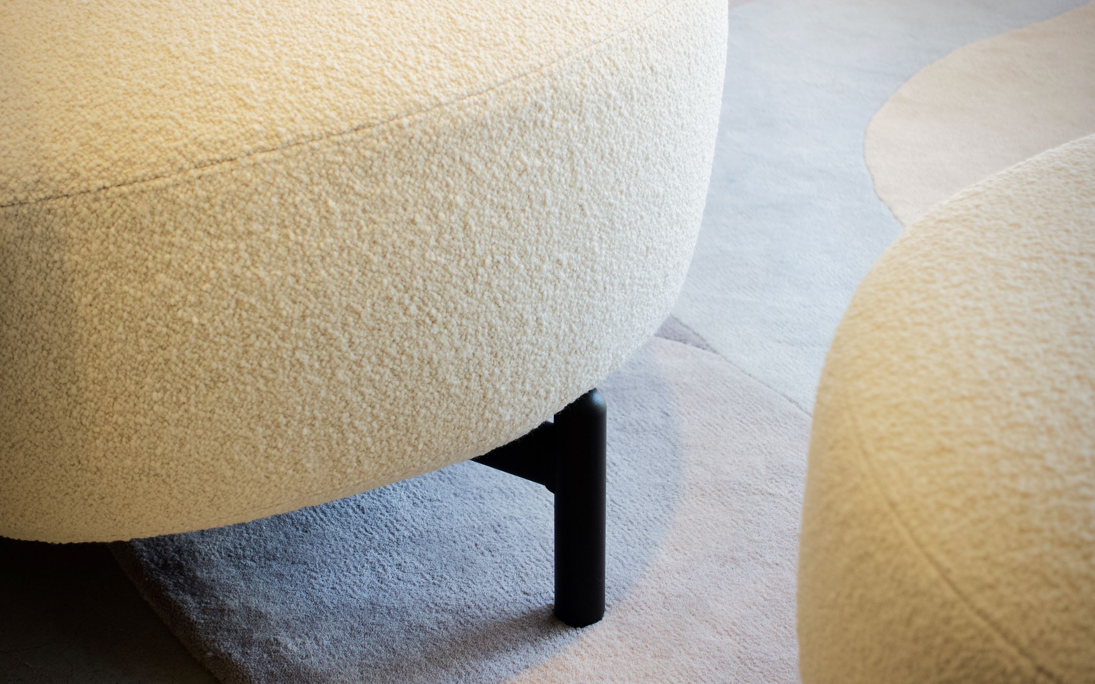 オルセットは生地自体がふっくらと厚みを持ち、撚った糸が表面に立体的な表情をもたらします。耐摩耗性が高く、多くの人が利用するパブリックスペースでの使用も想定した耐久性も魅力です。