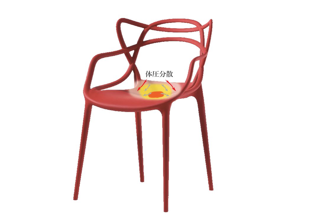 正しい姿勢で椅子に座らないと、お尻だけでなく背中にも圧力(=体圧)が集中して、腰痛の原因となるといわれています。