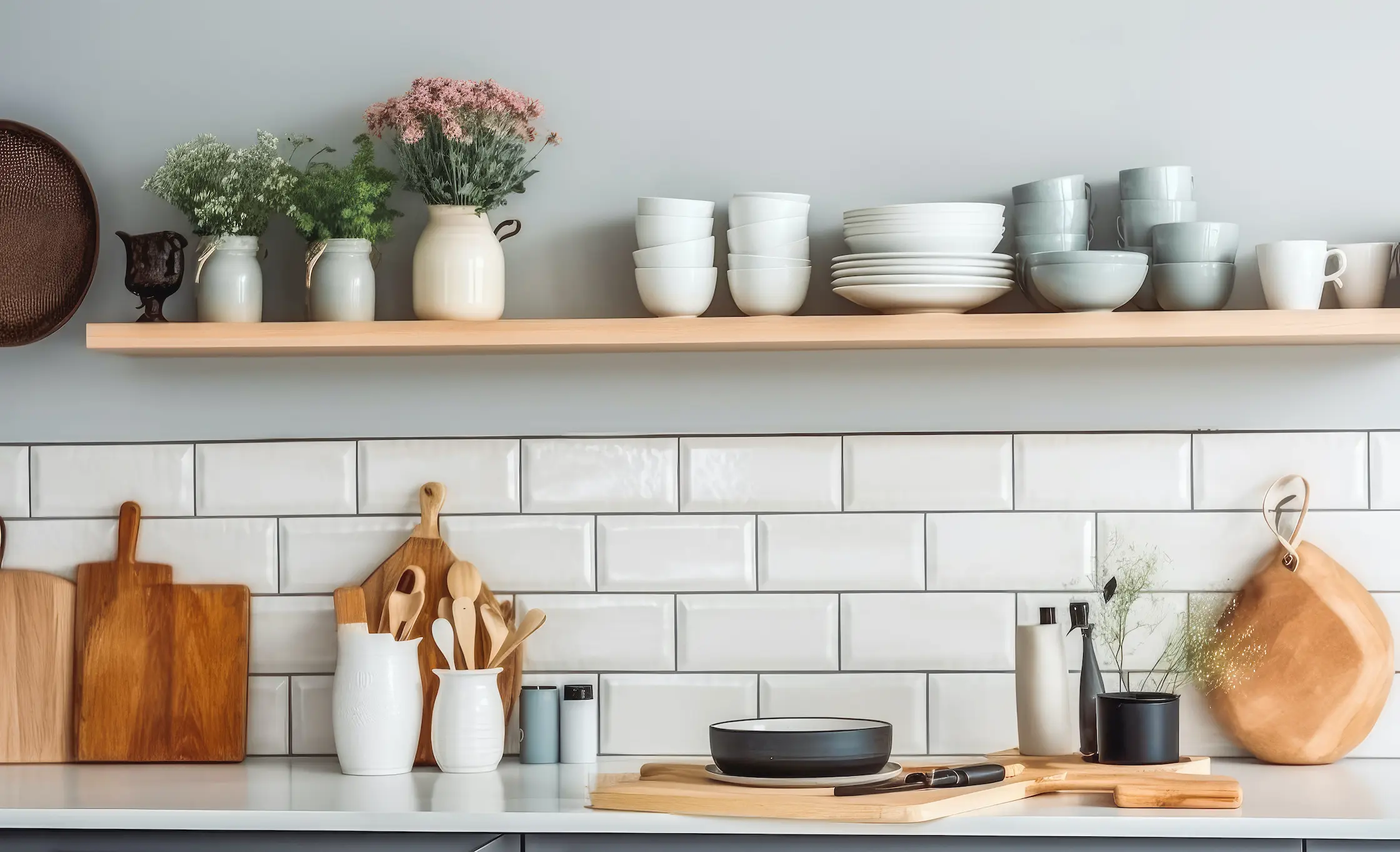 キッチンの飾り棚に何を収納するのかで、棚板の最適なサイズは変わります。収納するモノごとに、おすすめの棚板のサイズを解説します。