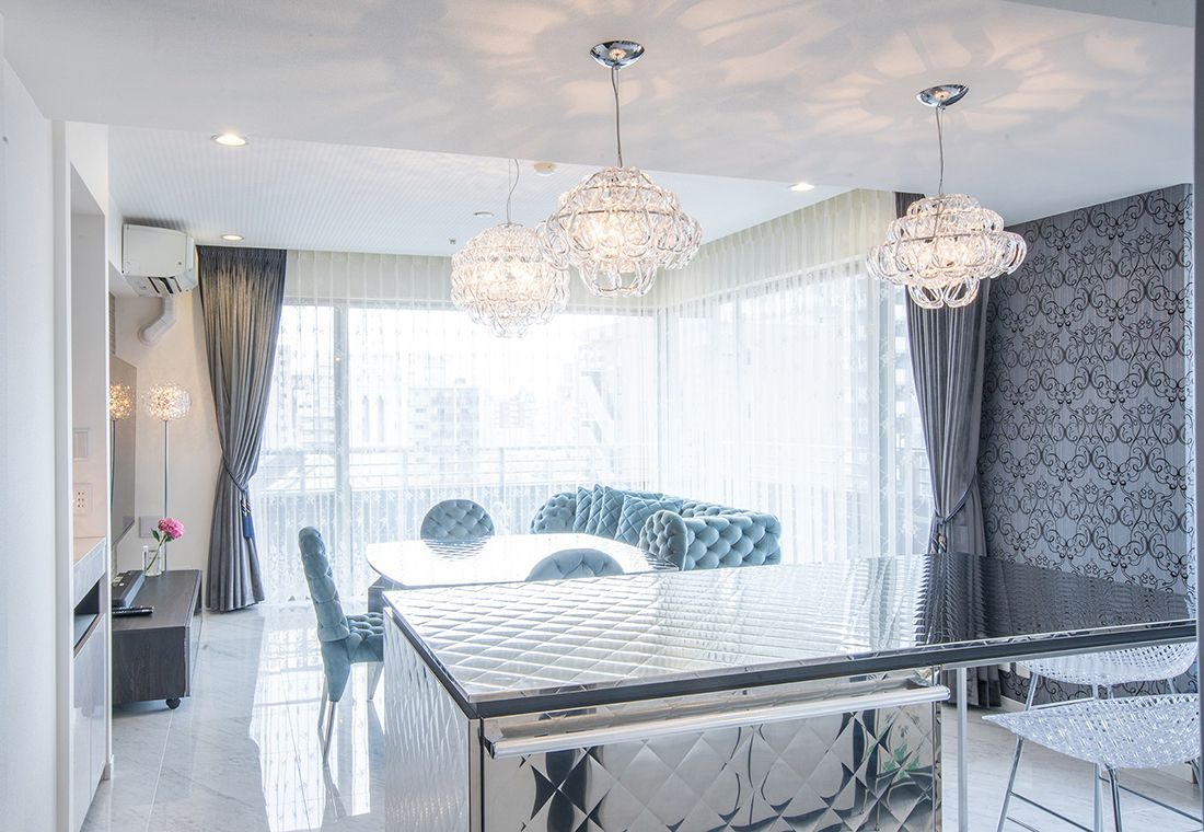 ステンレス鏡面脚のタイプなら、集(つどい)ソファやキッチンと脚元のデザインもリンクします。