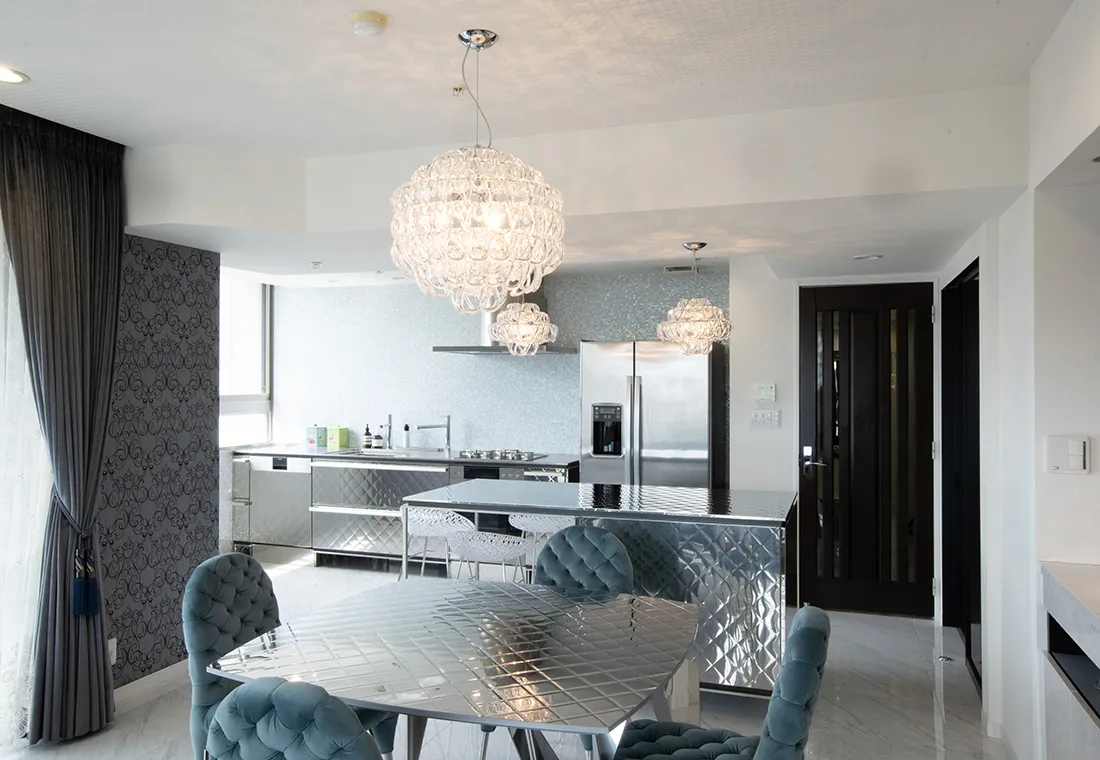 LDK空間で、キッチン、ダイニング、ローテーブルとデザインを合わせればより統一感が増します。