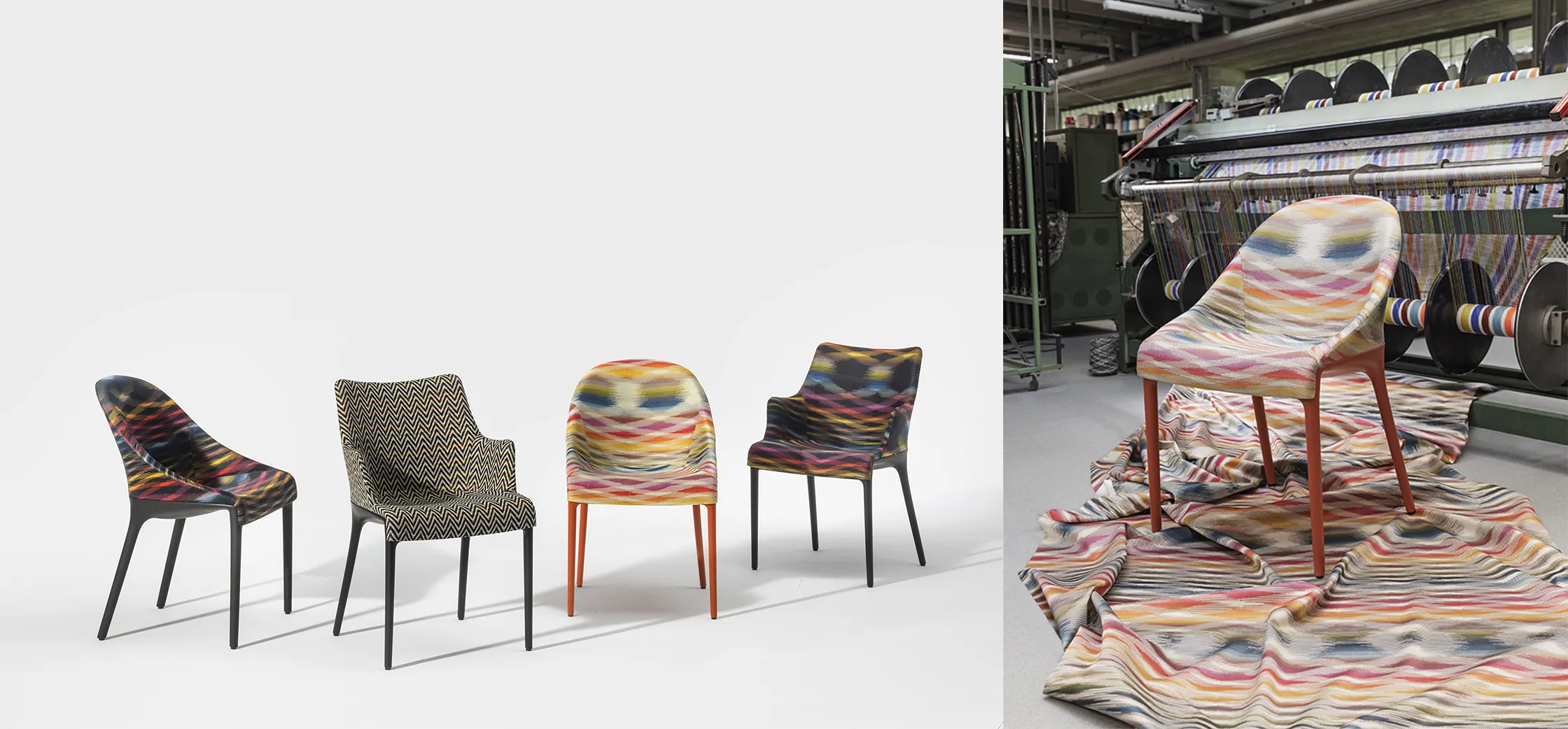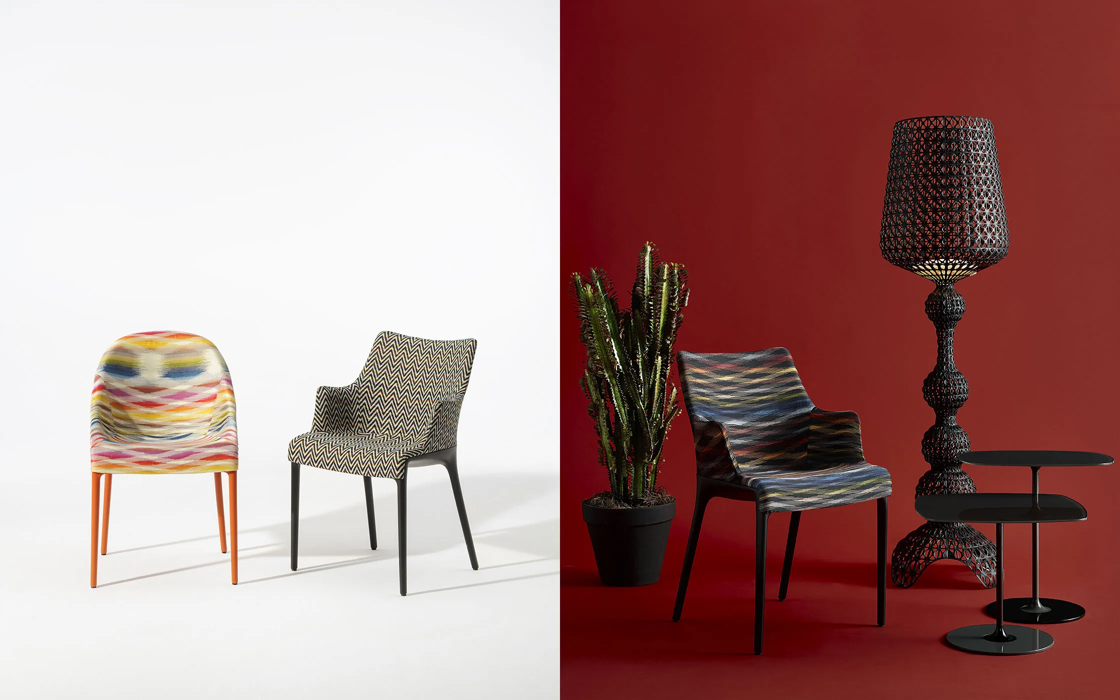 Kartellにはファッション界の巨匠たちとタッグを組むという伝統があります。ミッソーニは、そのファブリックの真髄ともいえるイタリアの卓越した技術が高く評価を得ています。エレガンツァはミッソーニのエレガントなファブリックを纏うことで、新たな魅力を放っています。