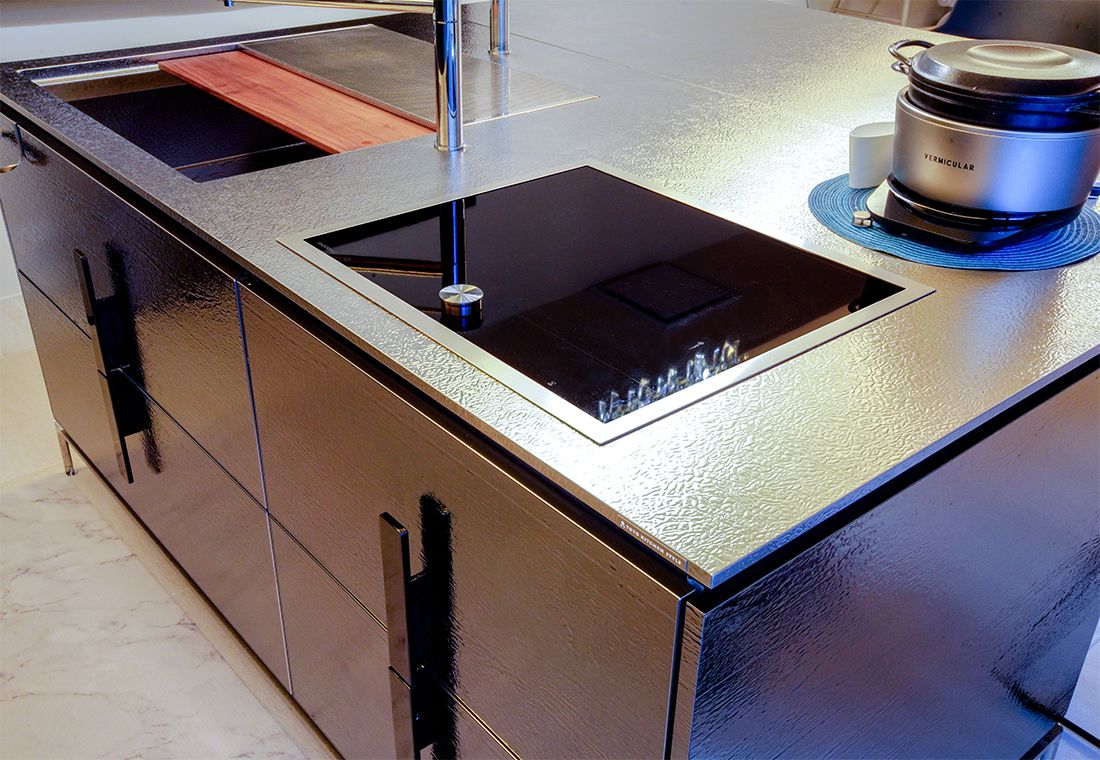 ガゲナウの加熱機器をビルトイン。その左にゼロ動線シンク「パラレロ」がある。