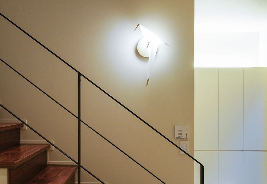 階段の壁にもモーイの「パーチライトウォール」を採用。