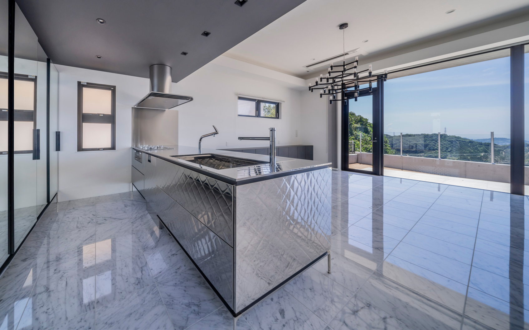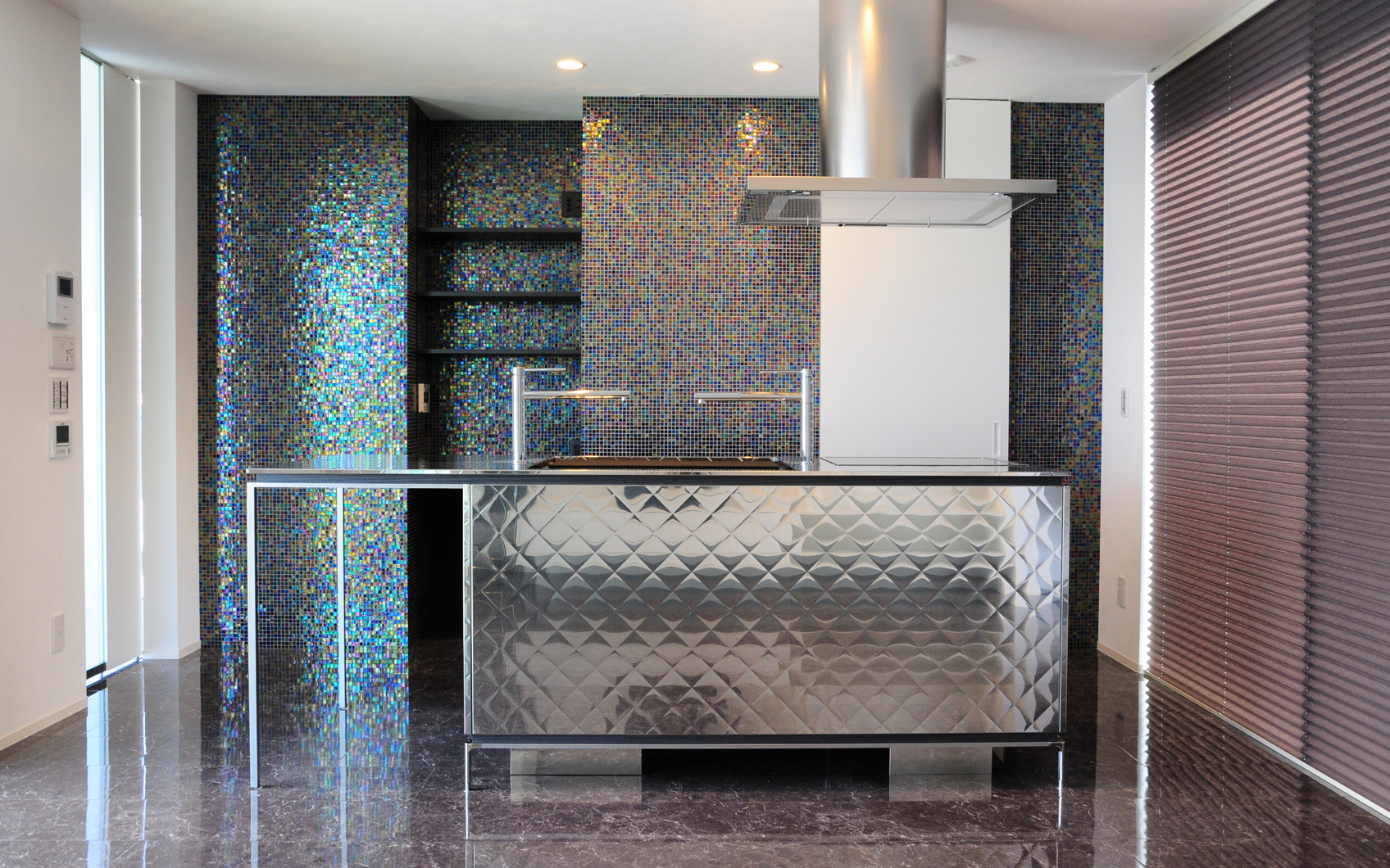 キルトの芸術品のような美しさと独自のこだわりに心惹かれ、オンウォールキッチンの扉とアイランドキッチンにキルトを採用。キッチンをオープンスタイルにされたのも『iNOキルト』のアイランドに一目惚れをされたからだそう。結果としてアイランドのまわりに回遊動線が生まれ、料理もしやすく、ご夫婦でキッチンに立つことも。