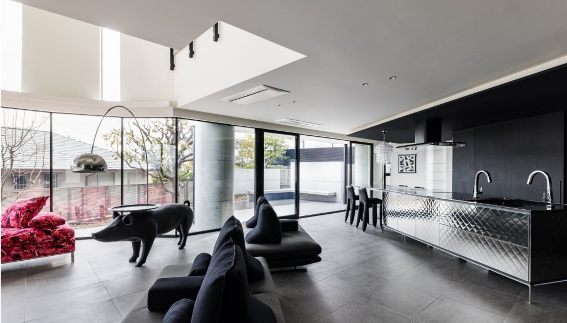 キッチンと一緒にコーディネートされたのはアート性の高いインテリアの数々。特にファッション関係者からのラブコールも多いmoooiの家具がたくさんセレクトされています。キッチンには扉と同じキルティングモチーフが施されたmoooiモンスターバースツールを採用いただきました。