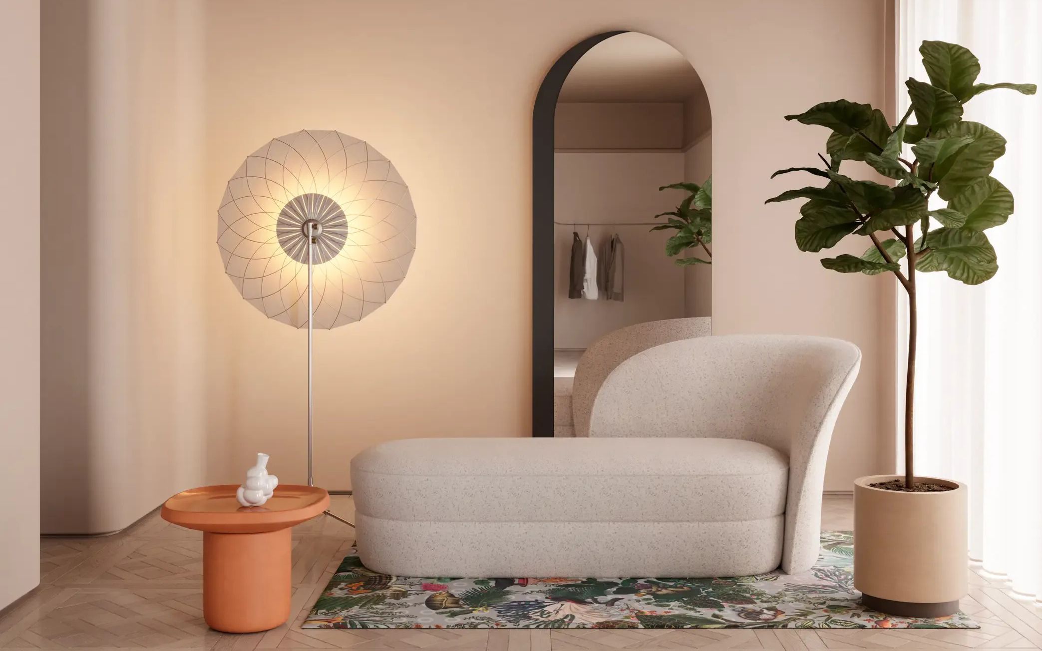 直線的な空間に、丸みのある家具を配置することで、安らぎを感じるお部屋作りができます。