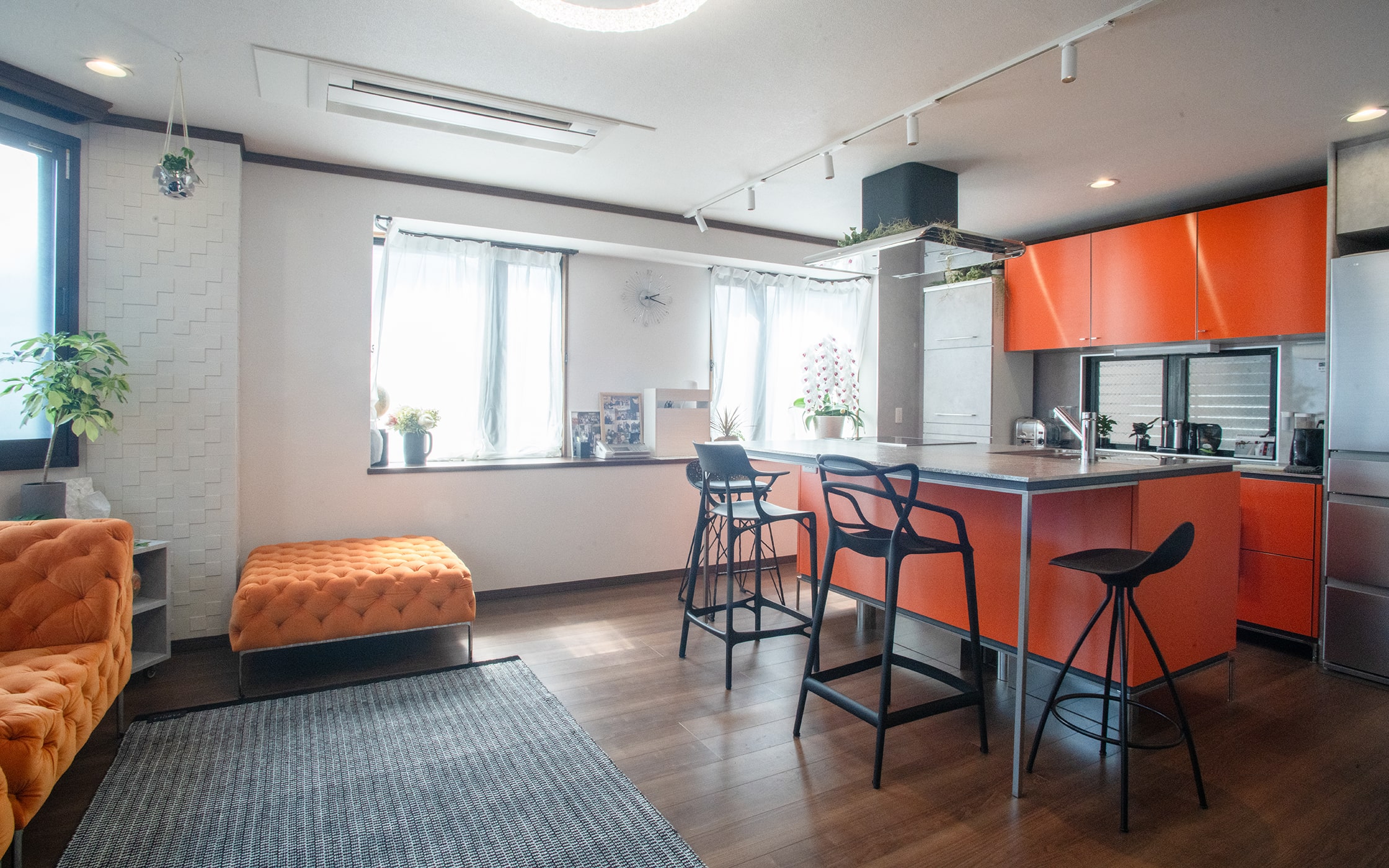 ショールームを訪ねるまではシックでホテルライクなインテリアにまとめるつもりだったという菰田様ですが、パッションオレンジの魔法にかかり、急きょ計画変更をすることに。