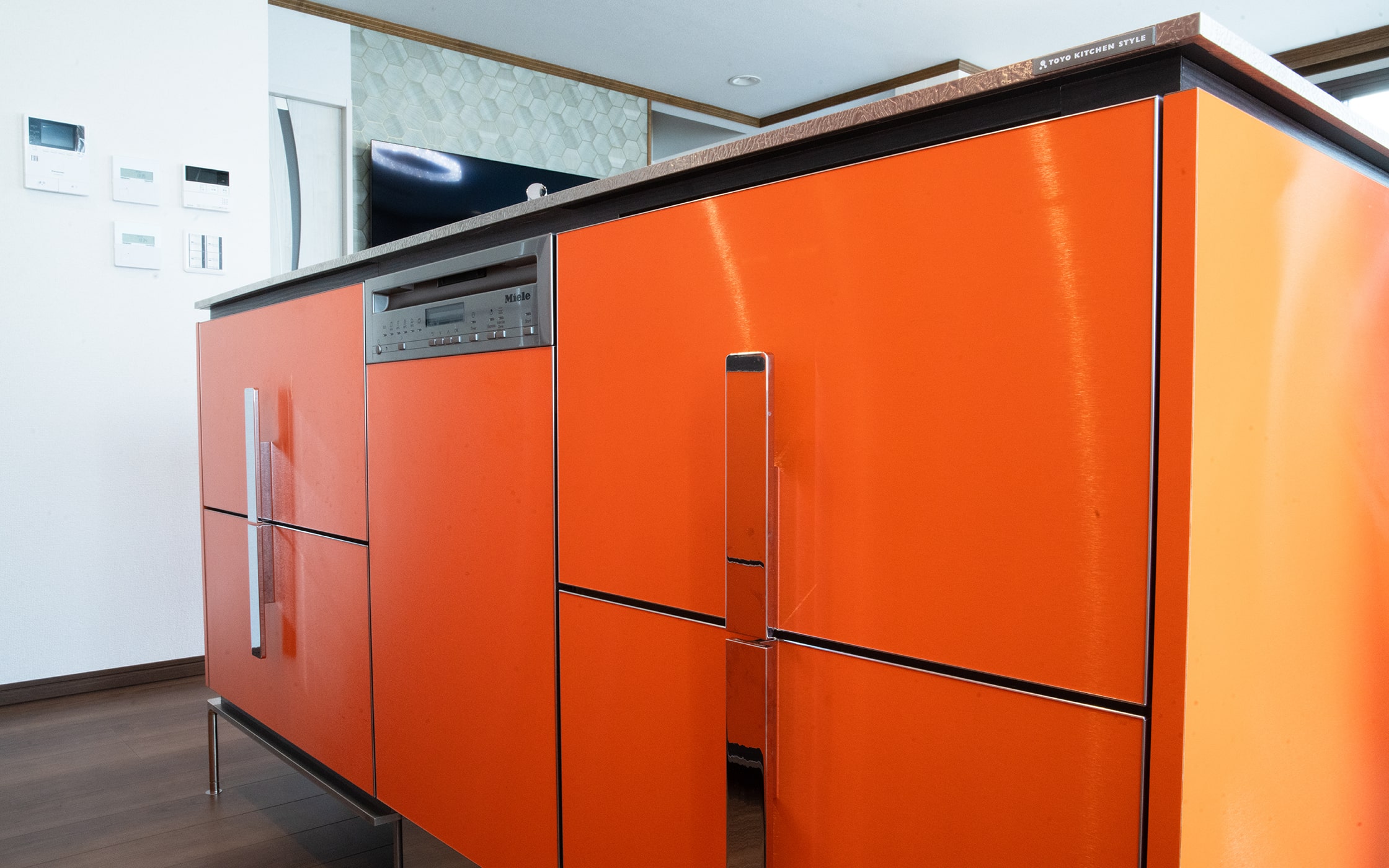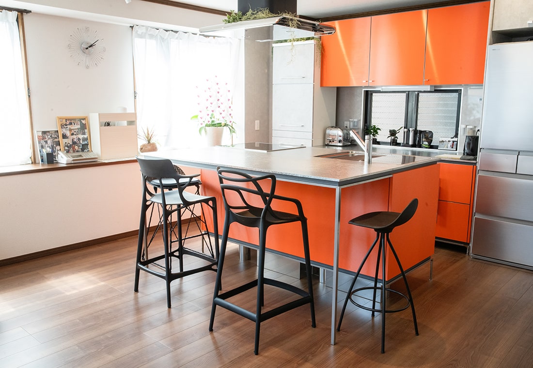 「私は最初、オレンジ色が入ったわが家を想像できなかったのですが、確かにこのキッチンのもつワクワク感は、ほかにはないもの。
