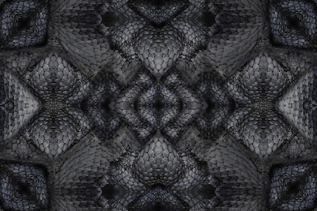 この動物の皮膚の武器のような独特な構造は、メタリックなハイライトで拡大し強調されています。
